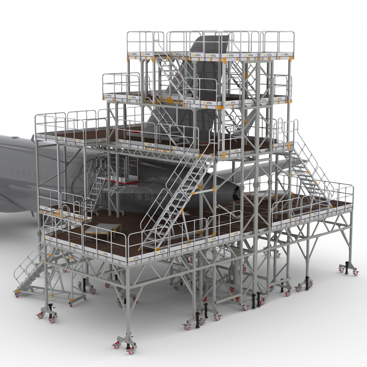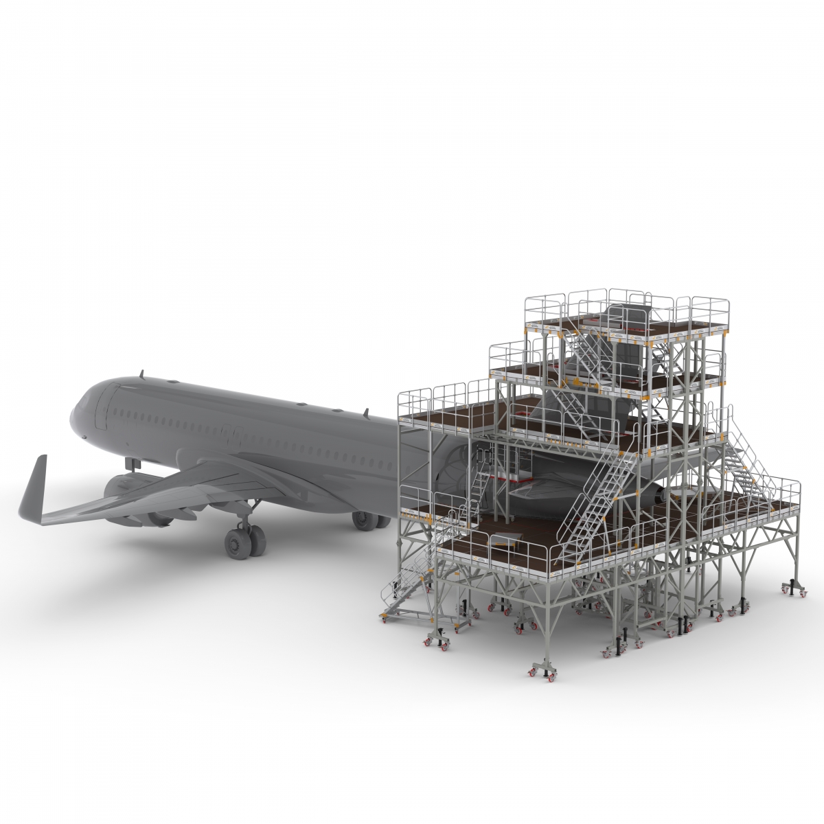 Varje flygplansdesign kräver sin unika lösning, och vi konstruerar plattformar som möter de höga krav som ställs inom flygindustrin – både vad gäller arbetsmiljö och åtkomlighet. Plattformarna byggs i moduler och kan justeras efter dina specifika behov.
