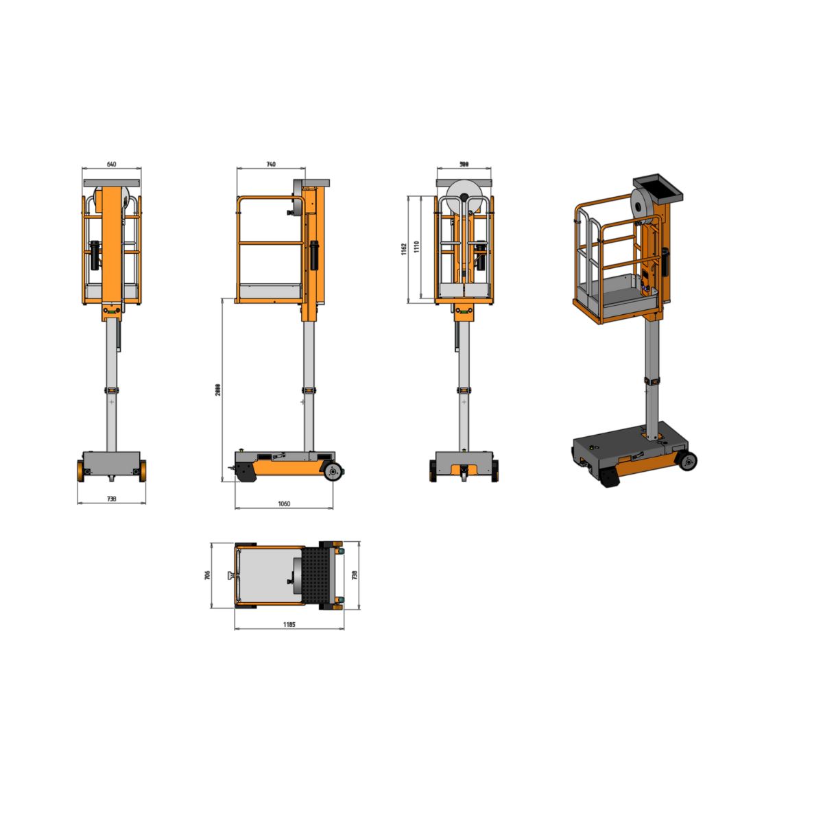 Tack vare sin robusta men smidiga konstruktion används Pelarlift 4,0m Manuell inom allt från bygg och fastighetsskötsel till butiksinredning och maskinservice. Den låga vikten och kompakta måtten gör den idealisk för trånga utrymmen, som kontor, verkstäder och lager. Inga monteringar krävs – sparar både tid och energi.