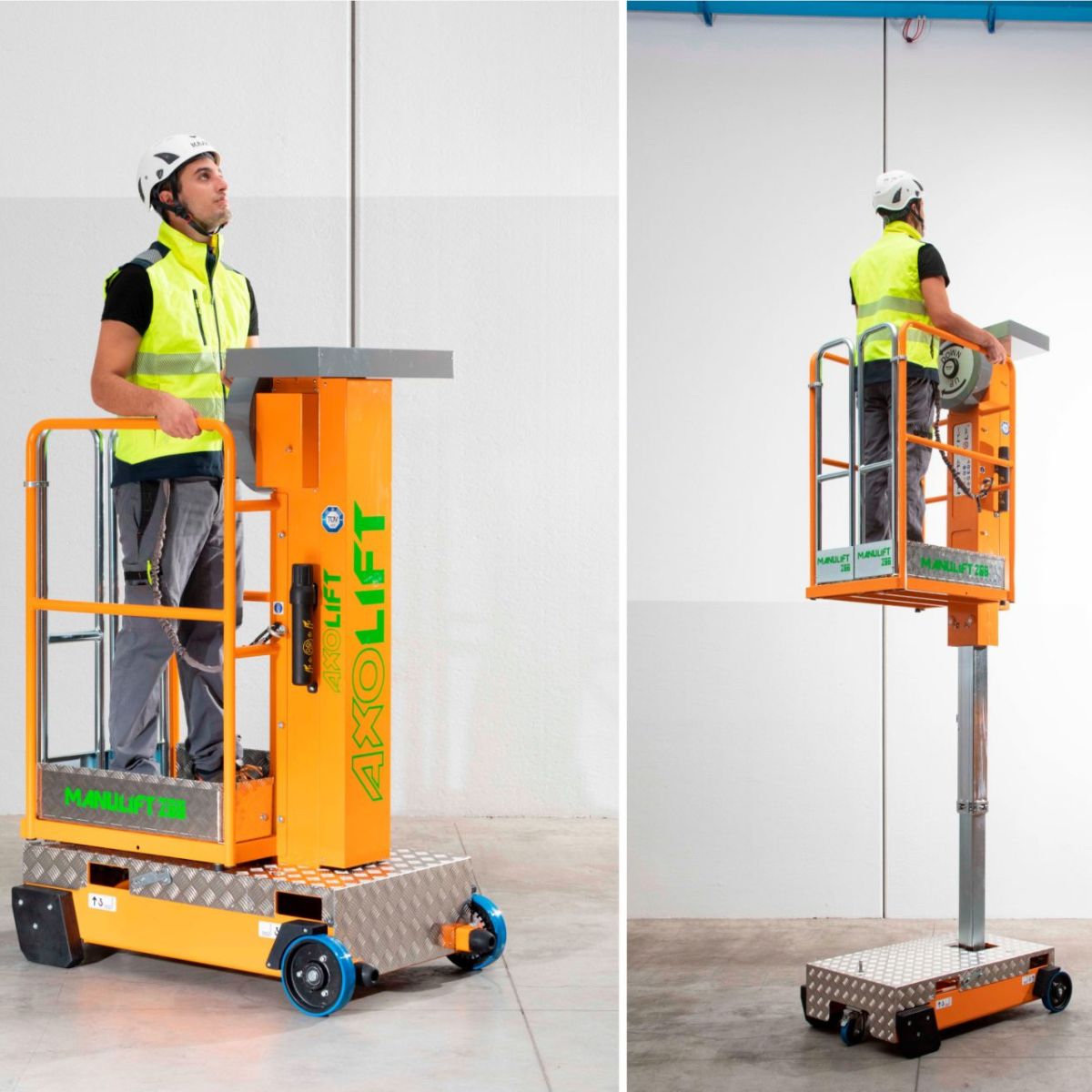 Pelarlift 4,0m Manuell från Axolift är en innovativ låghöjdslift framtagen för att helt ersätta stegar och tidskrävande rullställningar. Du placerar bara liften, stiger upp på plattformen och roterar det manuella handtaget till önskad höjd – enkelt, snabbt och säkert. Plattformen är perfekt för arbete upp till 4 meters höjd, inomhus och på plana golv.
