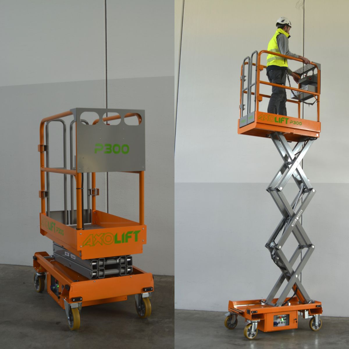 P300 är utvecklad för att tåla daglig hantering i krävande miljöer. Med pulverlackerad stålram i RAL 2000, CE-märkning och godkännande enligt EN 280, kombineras hög säkerhetsstandard med lång livslängd. Liften har även indikator för batteriladdning, nödstyrning, verktygshylla och låg markfrigång (50 mm) för ökad stabilitet.
