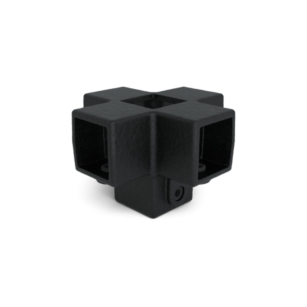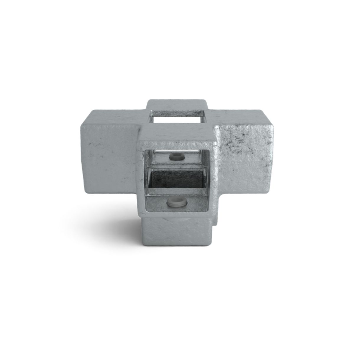 Fyrkantskoppling 4-vägs botten är en stark och mångsidig koppling för infästning av ett lodrätt rör tillsammans med fyra horisontella rör i 90°-vinkel. Perfekt för bottenramar och bärande konstruktioner.