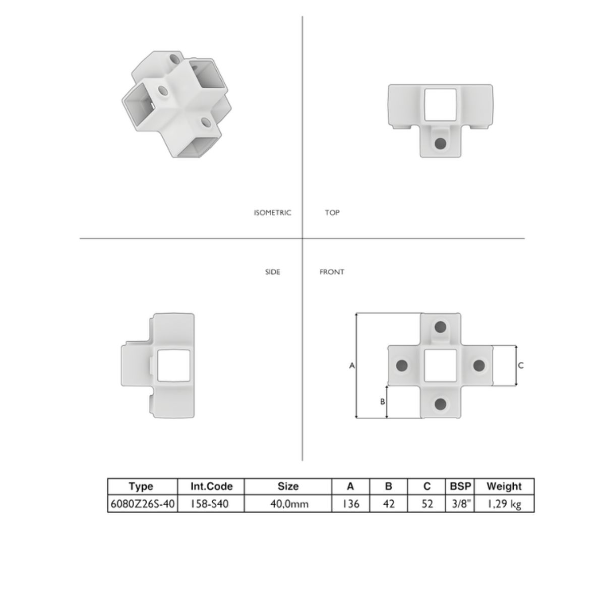 Kopplingen är tillgänglig i två storlekar – 25 mm och 40 mm – vilket gör det enkelt att integrera den i både mindre och mer krävande konstruktioner. Alla anslutningar säkras med insexskruvar för snabb och säker montering. Säljs styckvis för att du enkelt ska kunna planera materialåtgång och kostnad.