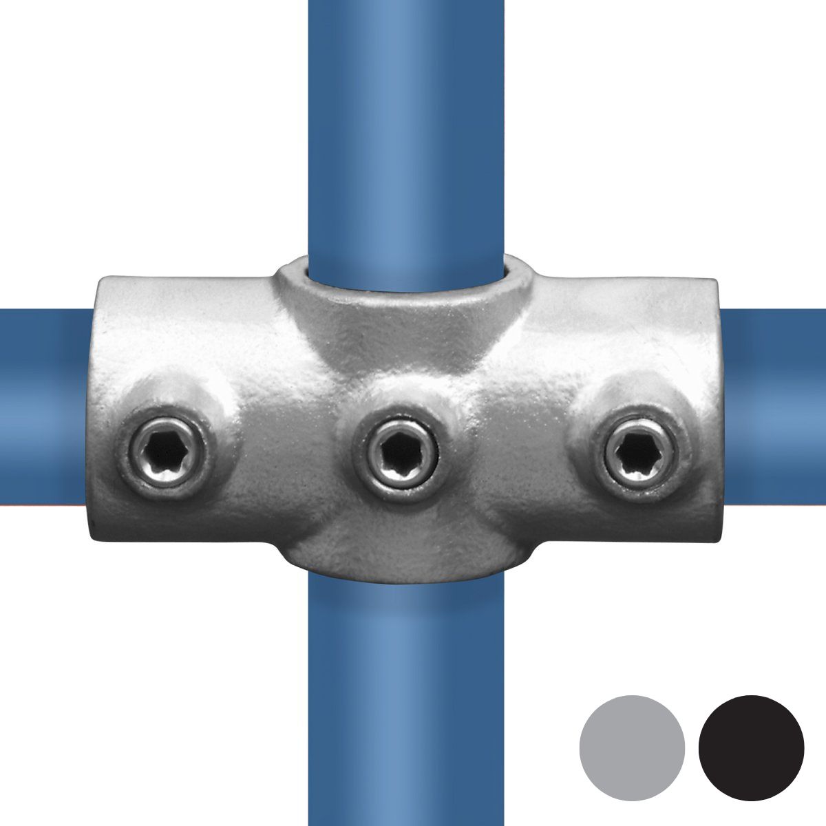 Rörkoppling genomgång är en stabil och flexibel koppling som används när ett rör ska gå rakt igenom konstruktionen, samtidigt som ett tvärrör ansluts vinkelrätt. En perfekt lösning för egenbyggda tält, garage, räcken, inhägnader och kreativa konstruktioner där du själv formar designen.