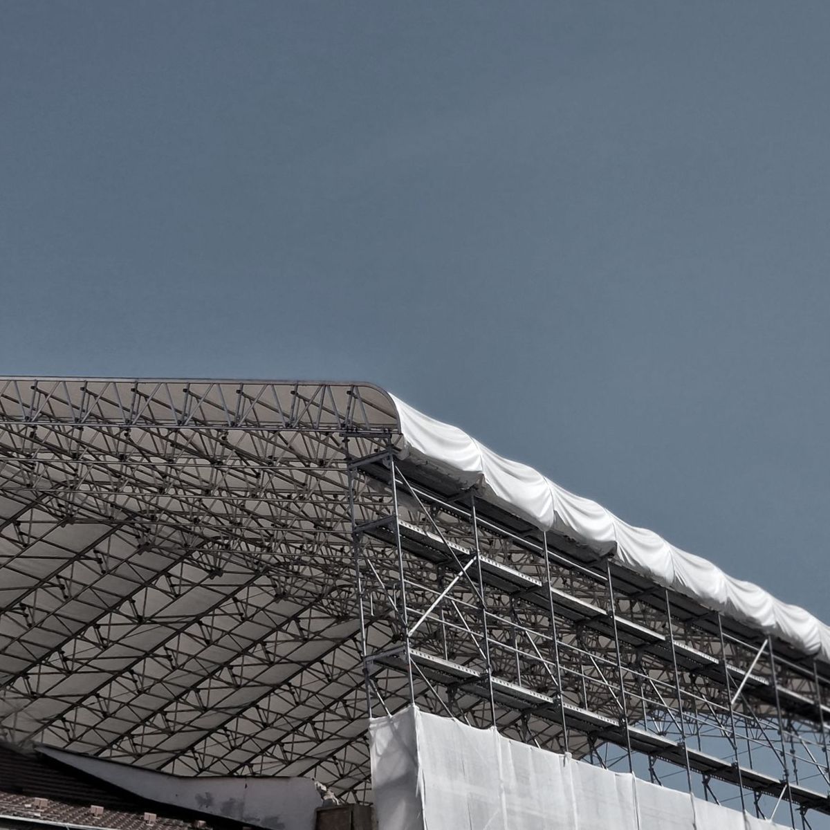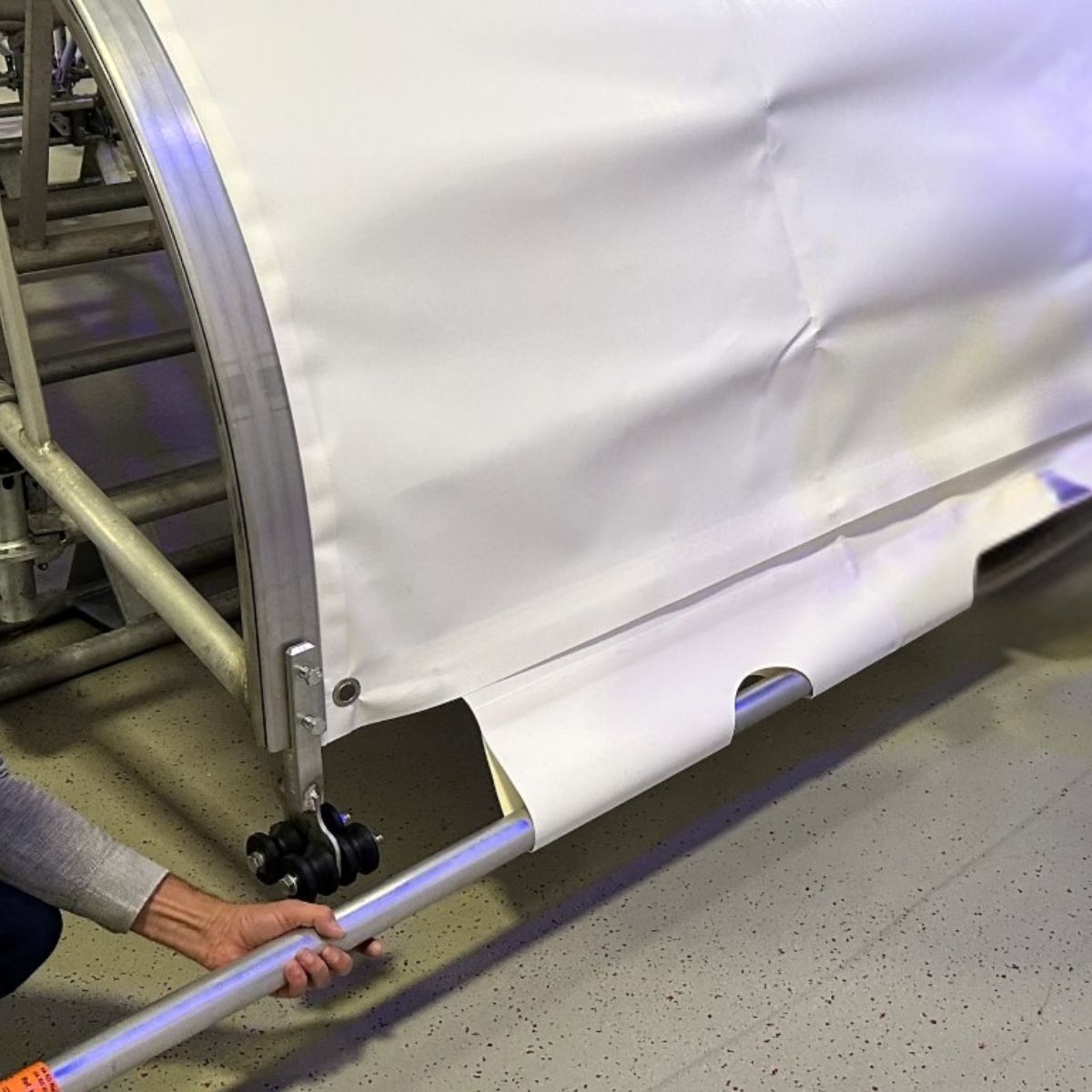Takduken är tillverkad av PVC-presenning 630 g/m2, ett beprövat material för långvarigt bruk utomhus. Materialet är vattentätt, UV-beständigt och rivstarkt, vilket säkerställer lång livslängd även vid kontinuerlig exponering för vind och nederbörd.