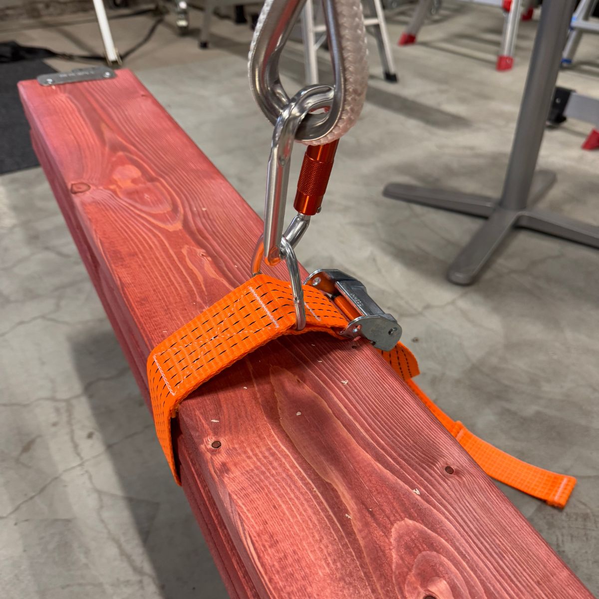 Den nya spännremmen och karbinen säkerställer att materialet sitter ordentligt fast under lyftet, vilket minskar risken för att lasten glider eller tappar stabilitet. Detta gör vinschen ännu tryggare och mer pålitlig vid dagligt arbete på höjd.