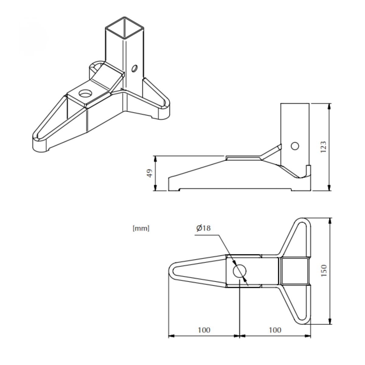 • Anpassningsbar montering: De tre stödpunkterna möjliggör installation på olika typer av underlag med en rad infästningsalternativ.