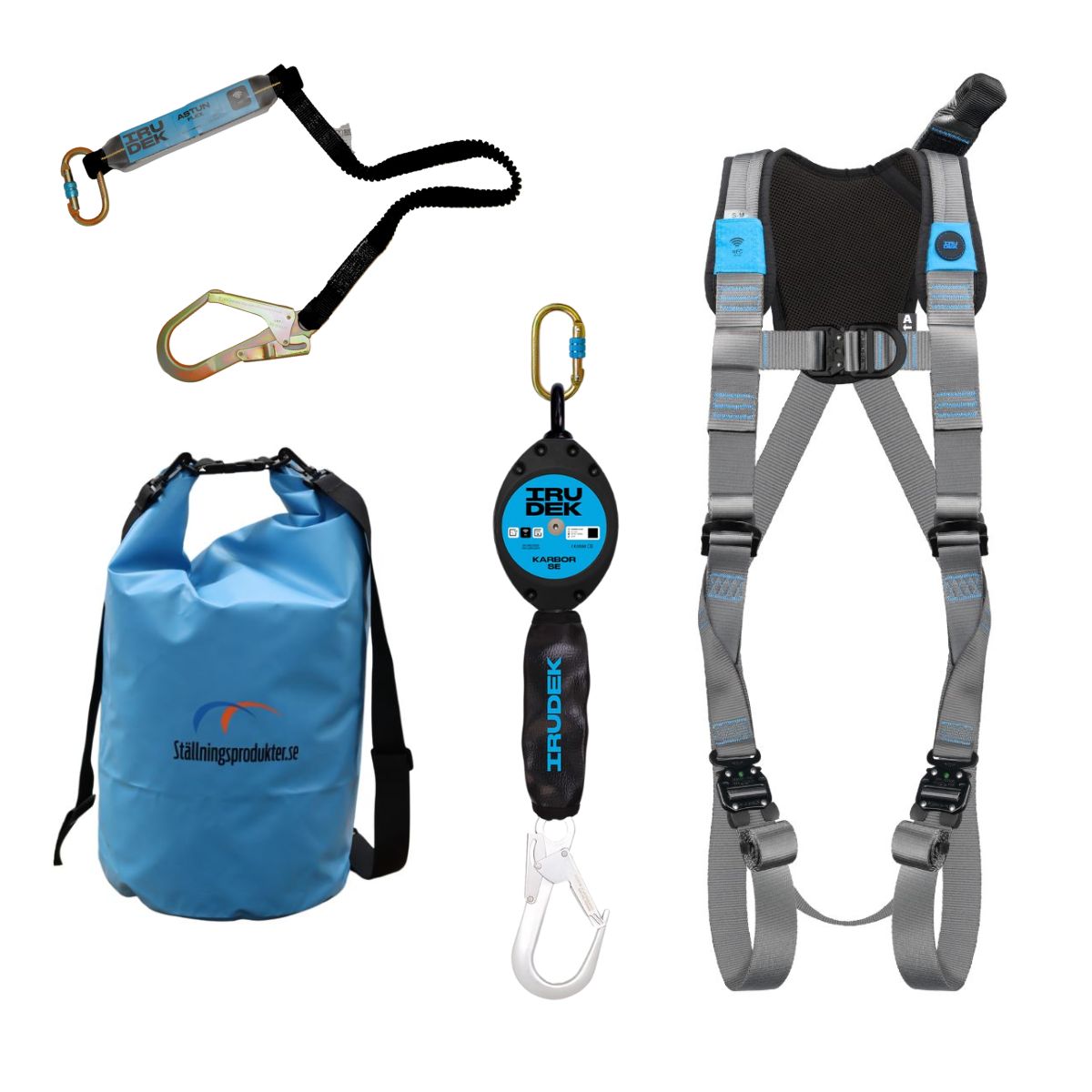 Detta paket lämpar sig för dig som vill kunna arbeta säkert och alltid vara förankrad. Även dig som är noga med säkerheten men samtidigt vill ha ett prisvärt fallskyddspaket som tåls att användas dagligen.