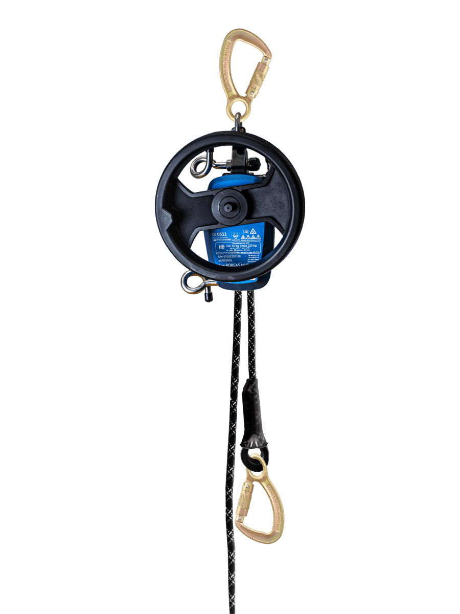 Automatisk evakueringsutrustning som möjliggör en kontrollerad nedstigning utan behov av operatörsingripande. Båda ändarna av repet används alternativt för nedfirning upp till 500m och 225 kg (2 personer). Dess redundanta bromssystem med två oberoende trummor ökar dess inspektionsperiod till 10 000 nedstigningsmeter och med Irubox-förpackningen skall den årliga inspektionen genomföras vart tionde år. Denna enhet är kompatibel med en handborr.