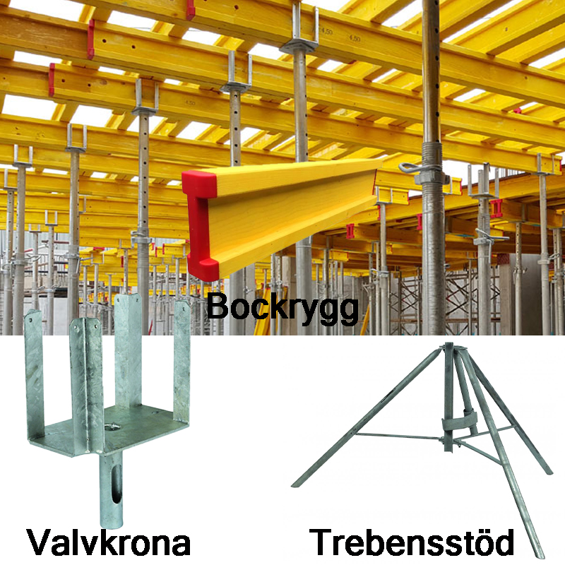 Bockryggar används som balk för fördelning av laster i samband med stämpning.
