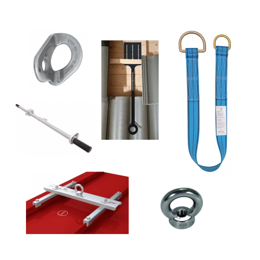 I vissa fall kan du även använda skorstenar, större ventilationshuvar eller andra bärande takdetaljer – men då krävs det att du kan fästa dig på ett säkert sätt runt objektet. Därför rekommenderar vi att du alltid har med en förankringsslinga som tillbehör. Den gör det enkelt att skapa en temporär infästningspunkt runt exempelvis en skorsten eller stolpe, och används tillsammans med karbinhake eller lina.
