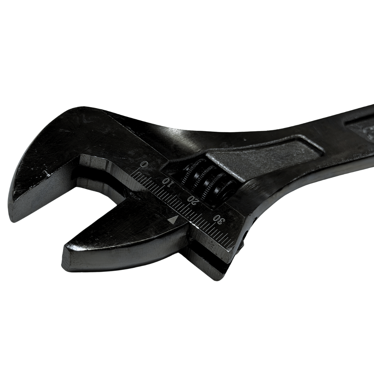 Denna skiftnyckel är utrustad med en tydlig måttskala direkt vid käftöppningen, vilket gör det enkelt att snabbt ställa in rätt grippvidd. Det ger högre precision och minskar risken för fel vid arbete med muttrar och bultar.